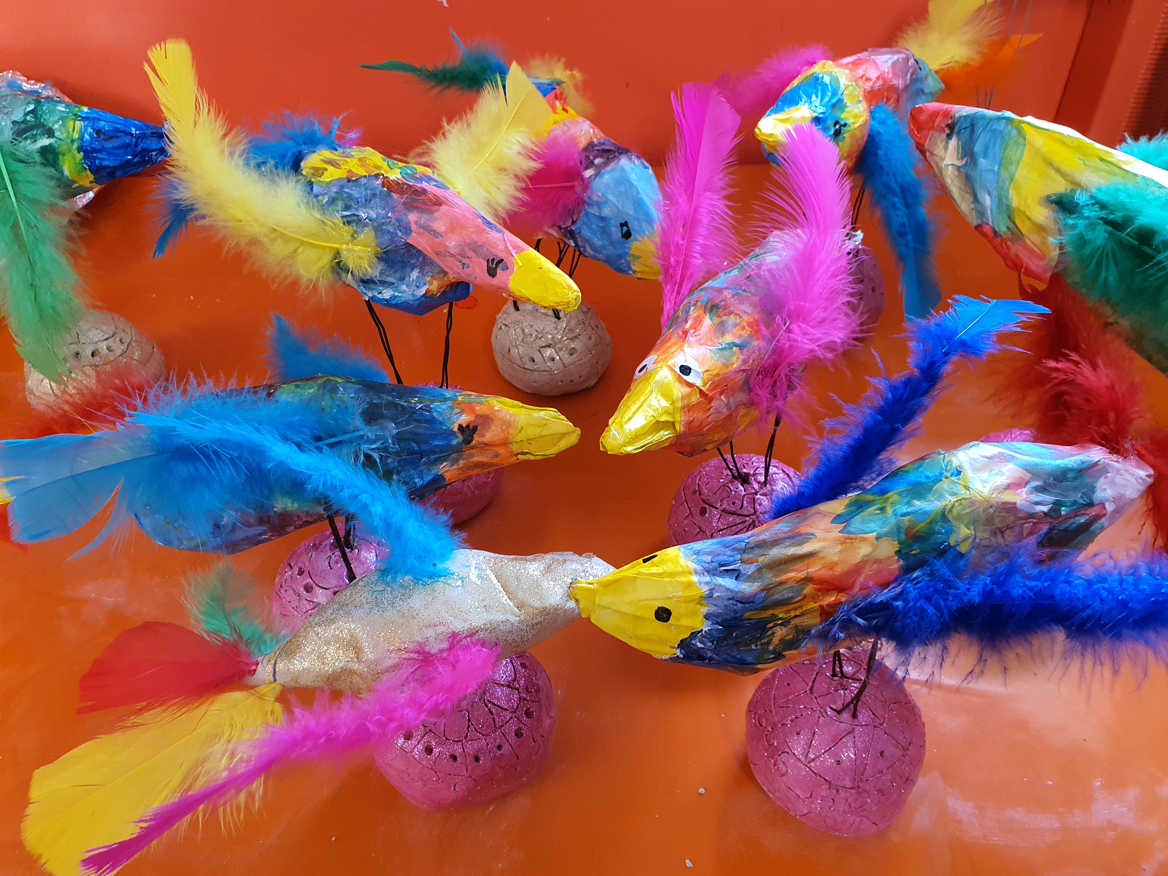 Dans cet atelier, les enfants sont amenés à pratiquer différentes techniques comme le dessin, la peinture, le collage, le papier-maché et le modelage en terre.